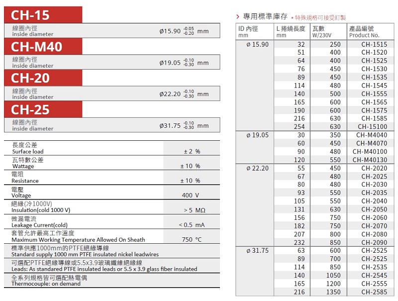 Beberapa panjang,watt,Diameter dalam dan luar boleh dibekalkan.